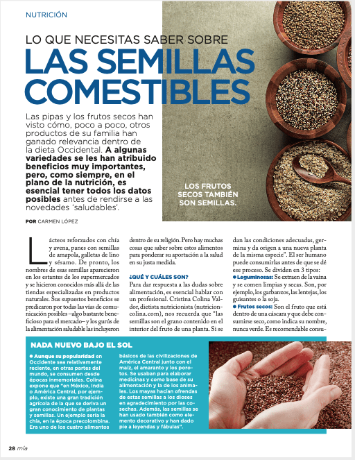Nutripost 🥜🌰Semillas Comestibles todo lo que necesitas saber Publicado por Cristina Colina Dietista Nutricionista el 26 enero, 2021 Revista Mia n°1.786 del miércoles 30-12-20 Compártelo:Tweet Haz clic para compartir en WhatsApp (Se abre en una ventana nueva) WhatsApp Haz clic para compartir en Telegram (Se abre en una ventana nueva) Telegram Me gusta Cargando... Relacionado