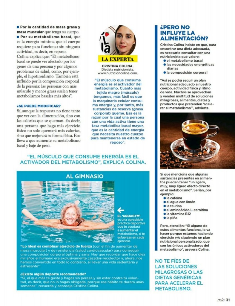 Nutripost Así quemamos calorías Publicado por Cristina Colina Dietista Nutricionista el 27 diciembre, 2021 Pierde peso activando tu metabolismo Revista Mia – n°1.837 Compártelo:Tweet Haz clic para compartir en WhatsApp (Se abre en una ventana nueva) WhatsApp Haz clic para compartir en Telegram (Se abre en una ventana nueva) Telegram Me gusta Cargando... Relacionado